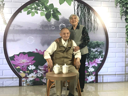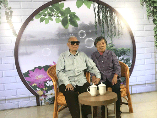 ![]() ![]() 滿頭銀絲下是一張張飽經(jīng)風(fēng)霜的臉,臉上卻始終掛著滿滿的笑容,眼里閃動(dòng)著淚花。他們用歲月定格“執(zhí)子之手,與子偕老”的愛(ài)情。