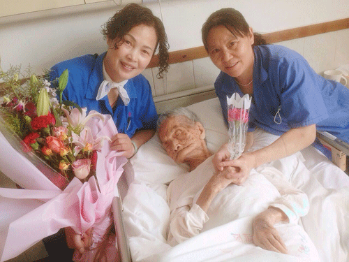 ![]() 小朗首先探望的是住在朗高護(hù)理院的陳高鳳老人,老人家今年已經(jīng)109歲了呢,祝陳奶奶節(jié)日快樂(lè),身體健康~