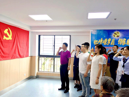 為慶祝中國共產(chǎn)黨成立96周年,蠡園朗高養(yǎng)老院黨支部的黨員們共聚一堂,舉行“入黨那一天、迎七一紀念活動”,值得一提的是參加活動的還有住在蠡園朗高養(yǎng)老院的8名老黨員,大家用獨特的形式熱烈慶祝黨的生日。