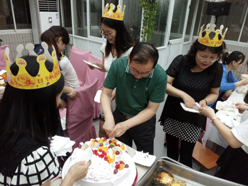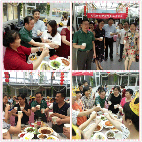 ![]() ▲護理院領(lǐng)導(dǎo)們以茶代酒祝壽星們生日快樂