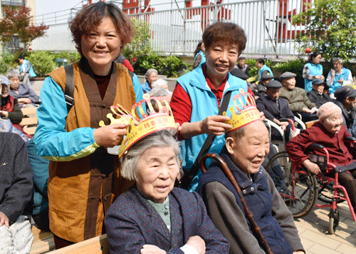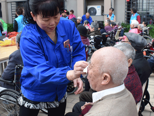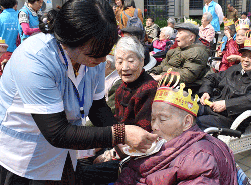 生日帽、蛋糕、長壽面,是朗高生日會(huì)必不可少的三要素,老人們在義工和醫(yī)護(hù)人員的陪同下,度過了一個(gè)愉快而溫情的生日會(huì)。