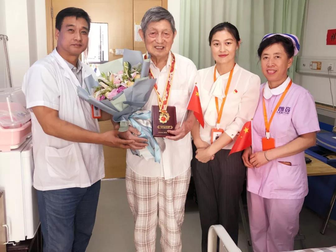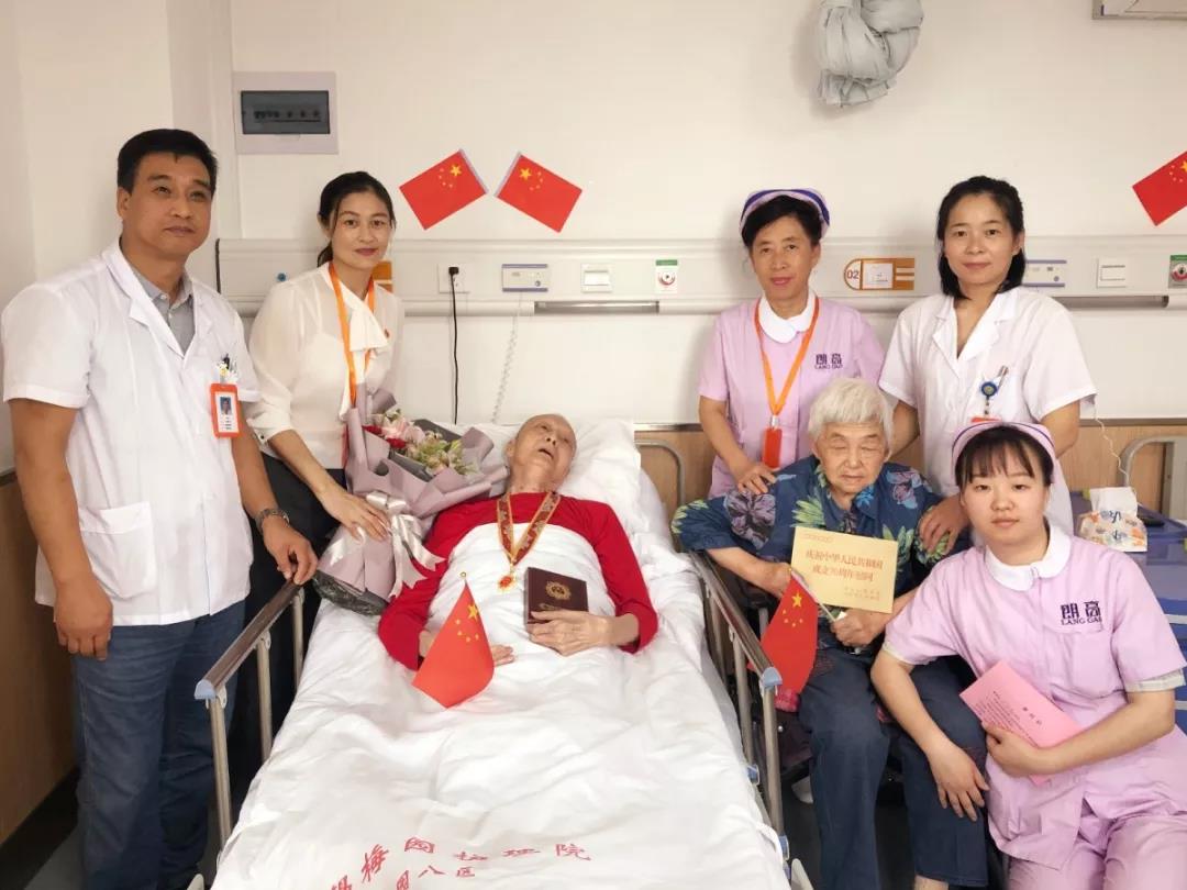 接過這枚金光閃閃的紀念章,金文清老人的臉上洋溢出幸福喜悅的笑容,在交談中,老同志打心底里高興,感謝黨和政府的關心,衷心祝愿我們的祖國更加繁榮昌盛。無錫市濱湖區(qū)蠡園朗高養(yǎng)老院黨支部書記李艷說:“老黨員、老干部是黨和國家最大的功臣、最寶貴的財富,我們衷心祝愿他們健康長壽、在朗高生活幸福。”