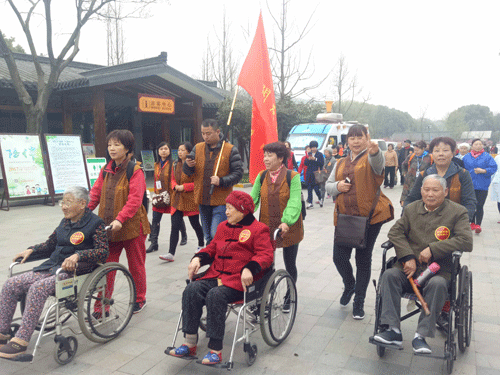 3月29號(hào)上午來(lái)自朗高護(hù)理院、朗高社區(qū)居家養(yǎng)老的70多位老人到梅園踏青游園、開原寺祈福。老人們?cè)诹x工、家屬的陪同下游園賞花,在桃花樹下拍照留念,留下美好的瞬間。